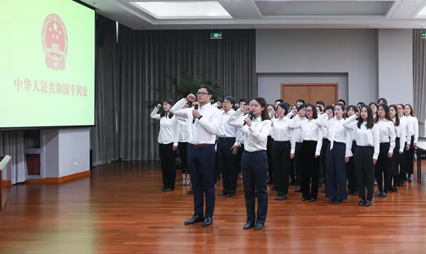 中心组织审查独立上岗宣誓,图为外观设计专利第19期新审查员宣誓现场。