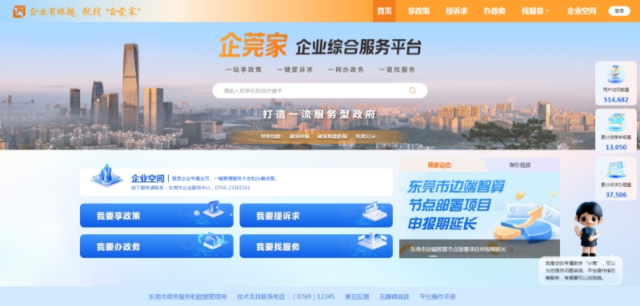 近年来,东莞市政府办公室牢固树立“整体政府”理念,以企业需求、用户思维为导向,会同市政务和数据局统筹推动“企莞家”平台整合全市涉企服务事项,将其打造成为“企业办事总入口、企业诉求总客服、企业服务总超市”。