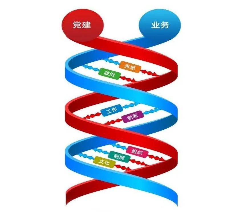 党建和业务融合“DNA双螺旋”工作模式示意图。