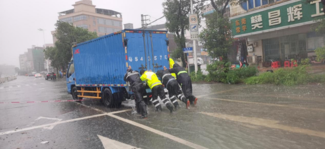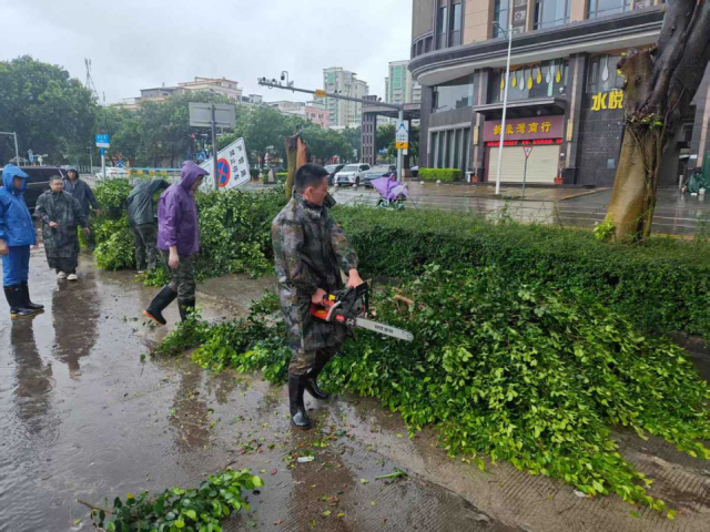 根据东莞军分区动员部署,市直机关与国企武装部组建近百人民兵应急队,严格执行24小时备勤,闻令即动、高效响应。在基层,清溪、樟木头、常平、高埗、莞城、洪梅、道滘、寮步、长安等镇街武装部闻“汛”而动、听令出击,组织广大民兵积极参与群众疏散转移、道路清障、内涝险情处置等任务,以实际行动支援辖区防台风险情处置。
