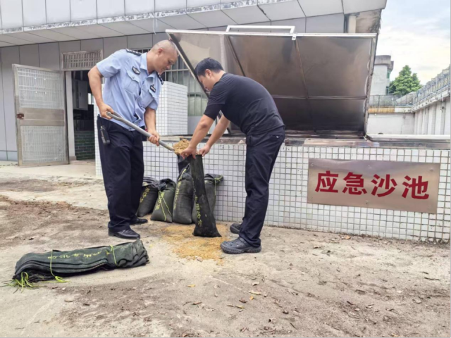 东莞监狱坚决落实上级部署,迅速进入应急状态,全面强化隐患排查和应急准备。严格执行领导带班和24小时值守制度,党员民警冲锋示范带头,加强对四周河堤、监管区域、周界设施和排水系统和巡查排险,配齐备足防汛物资,切实守护监管场所和人员安全。全体民警职工严阵以待,以高度政治责任感和顽强拼搏精神,全力筑牢防汛防风防涝安全防线。