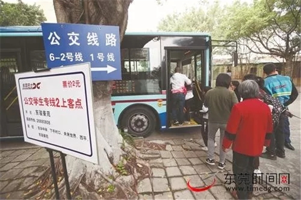 ▲2019年2月22日,公交学生专线正式开启,家长和学生乘坐公交出行(东莞日报记者 郑家雄 摄)